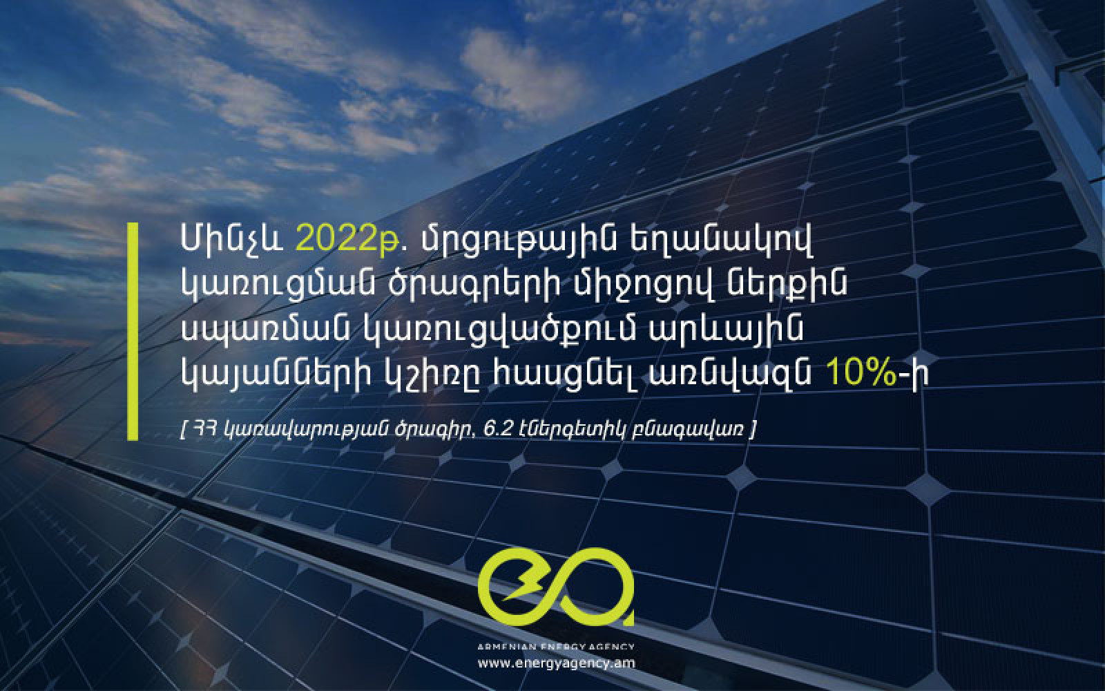 The Article 6.2 of the Government program of the Republic of Armenia applies completely to the Energy Sector.